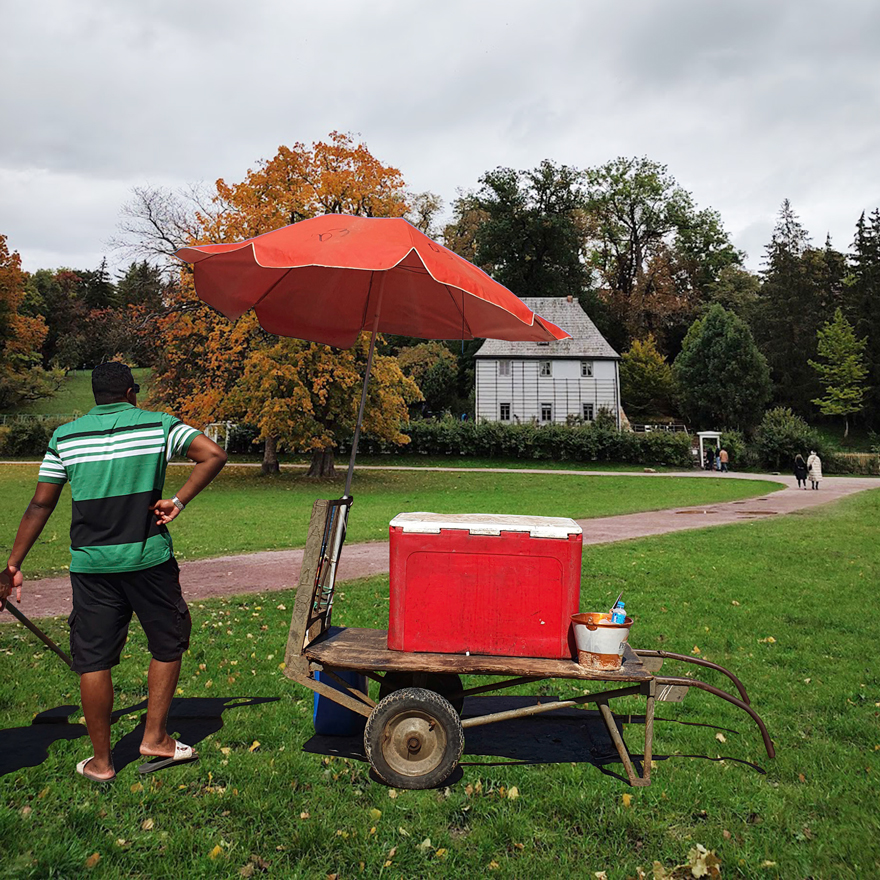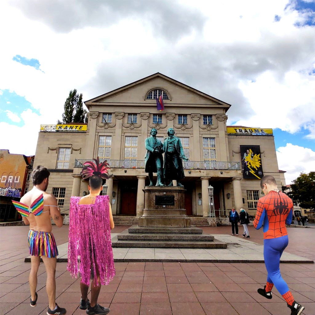 Digital montages merging fragments of São Paulo and Weimar: